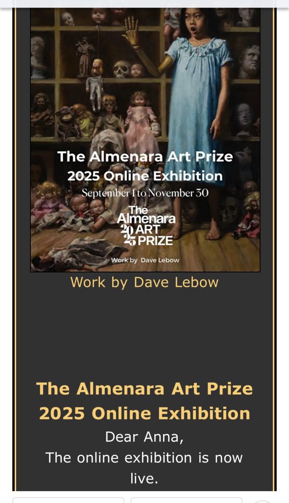 Naše členka malířka Anna Artemenko se raduje ze svého dalšího úspěchu. Její obraz byl vybrán k účasti na mezinárodní online výstavě Almonera Art Prize 2025. Autorka k tomu uvádí: